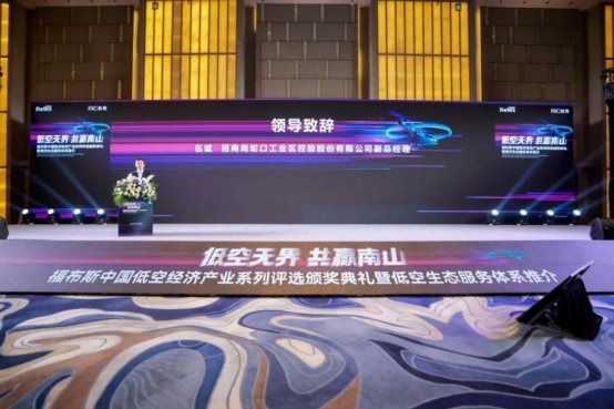该荣誉由福布斯中国集团颁发,经报名邀约、资料审查、调研考察、专家评审推荐等多轮严格遴选产生。这一荣誉的获得,源于前海-蛇口低空经济先导区在产业生态构建与场景应用创新方面的持续深耕。目前,先导区已完成产业规划定位,取得多项阶段性成果与进展:蛇口港口岸扩大开放增加跨境直升机出入境功能顺利通过国家验收组验收;依托深圳国际邮轮母港,完成在国内客运码头突堤顶端天面规划建设A1类直升机场的工程建设;成功开发数字化塔台及起降场的软硬件产品样品,并在大湾区内应用;规划在低空主题园区内建设集先导区综合展厅、空域协同指挥中心、科普研学功能于一体的"低空综合体";发布"前海-蛇口低空主题园区"规划,初步形成"研发-试验-制造-应用"一体化协同发展的产业雏形"……从口岸验收到场景落地,从硬件建设到生态构建,招商蛇口正以扎实步伐,书写低空经济高质量发展答卷。 平台赋能 低空经济生态服务体系正式发布 伍斌在致辞中表示,招商蛇口积极融入到集团“第三次创业”进程,矢志不渝地推动科技创新和战略性新兴产业培育,推动产园业务从“空间运营”向“产业运营”深刻变革。低空经济,作为新质生产力的代表和下一个万亿产业的新风口,招商蛇口早在2024年就将其锚定为核心产业方向之一。招商蛇口联合南山区人民政府、前海管理局、中信海直和深圳电信合作共建的“前海-蛇口低空经济先导区”,是基于蛇口丰富的空域资源、前海-蛇口自贸区高效务实的营商环境,深圳南山全球领先的低空产业生态等核心要素打造的低空经济产业发展新高地,更是公司培育新质生产力、融入国家战略的决心体现。作为产业运营服务商,招商蛇口努力构建先导区低空产业共生共荣的发展平台,通过联动南山区政府和前海管理局,提供前海-蛇口自贸区独特的“政策赋能”;通过联动集团内部丰富的金融资源,为企业提供全生命周期的“金融赋能”;通过联合中国电信和中信海直,整合三方央企资源能力提供“平台赋能”;通过搭建一站式专业服务体系,链接合作机构,提供精准的“生态赋能”等等,目的就是全方位赋能企业高质量发展,助力低空经济行稳致远。 伍斌强调:蛇口,是改革开放“破冰启航”的地方,在这片流淌着创新基因的土地上,我们希望能与各位优秀的科学家、企业家、投资者以及招商系的兄弟单位一道,在“中国低空经济第一城”深圳,共同打造中国低空产业的“新航船”,驶向广阔无垠的“新蓝海”!